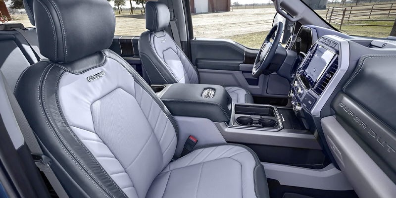 Choose a model with the crew cab to give your passengers the greatest amount of space they can relax in. As you progress through trim levels, the Super Duty's cabin grows more luxurious. Choose the King Ranch to get southwestern-themed accents and tan leather for your seats. Each model features a touch screen that you can use to create a smart hands-free smartphone experience. Make your cabin cozier with features such as heated and ventilated front seats, leather upholstery, dual-zone electronic automatic temperature control, and a premium 10-speaker sound system, to name a few of the upgrades available to the Super Duty.