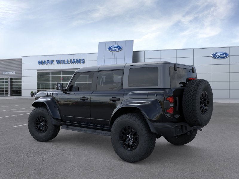 Shadow Black 2025 Ford Bronco Raptor 4WD 10-Speed Automatic 3.0L EcoBoost V6 12 Speakers, 4-Wheel Disc Brakes, ABS brakes, Air Conditioning, Alloy wheels, AM/FM radio: SiriusXM with 360L, Auto High-beam Headlights, Auto-dimming Rear-View mirror, Automatic temperature control, Brake assist, Compass, Connected Navigation, Convertible HardTop, Convertible roof lining, Delay-off headlights, Driver door bin, Driver vanity mirror, Dual front impact airbags, Dual front side impact airbags, Electronic Stability Control, Emergency communication system: 911 Assist, Equipment Group 374A Lux Package, Exterior Parking Camera Rear, Front anti-roll bar, Front Bucket Seats, Front Center Armrest, Front dual zone A/C, Front fog lights, Front reading lights, Front wheel independent suspension, Fully automatic headlights, Garage door transmitter, Glass rear window, Heated door mirrors, Heated front seats, Heated steering wheel, Illuminated entry, Integrated roll-over protection, Interior Carbon Fiber Pack, Internet access capable: FordPass Connect, Leather Shift Knob, Leather-Trimmed/Vinyl Bucket Seats, Low tire pressure warning, Marine Grade Vinyl Bucket Seats, Navigation system: Connected Navigation, Occupant sensing airbag, Outside temperature display, Overhead airbag, Overhead console, Panic alarm, Passenger door bin, Passenger vanity mirror, Power door mirrors, Power steering, Power windows, Radio data system, Radio: B&O Sound System by Bang & Olufsen, Rear anti-roll bar, Rear seat center armrest, Rear window defroster, Rear window wiper, Remote keyless entry, Security system, SiriusXM w/360L, Speed control, Split folding rear seat, Steering wheel mounted audio controls, SYNC 4, Tachometer, Telescoping steering wheel, Tilt steering wheel, Traction control, Trip computer, Turn signal indicator mirrors, Variably intermittent wipers, Voltmeter, Wheels: 17 Black High Gloss-Painted Aluminum.
