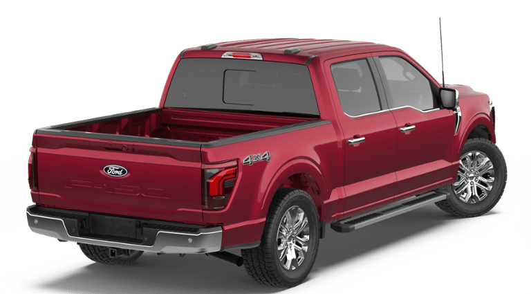 Ruby Red Metallic Tinted Clearcoat 2026 Ford F-150 Lariat 4WD 10-Speed Automatic 5.0L V8 Alloy Wheels, Aluminum Wheels, Bluetooth®, Leather Seats, Navigation System, Backup Camera, Remote Start, 4WD, 4x4 FX4 Off-Road Bodyside Decal, 6 Angular Bright Anodized Step Bar, ActiveX Trimmed Bucket Seats, Alloy wheels, Chrome wheels, Console Worksurface, Electronic Locking with 3.73 Axle Ratio, Equipment Group 501A Mid, Ford Connectivity Package (1-Year Included), FX4 Off-Road Package, Hill Descent Control, Illuminated Driver and Passenger Visors, Internet access capable: 5G Modem - Ford Connectivity Package, Mobile Office Package, Monotube Rear Shocks, Navigation system: Connected Navigation, Off-Road Tuned Front Shock Absorbers, Partitioned Lockable Rear Storage, Power-Adjustable Pedals with Memory, Power-Sliding Rear Window, Radio: B&O Sound System by Bang and Olufsen, Rock Crawl Mode, SYNC 4 with Enhanced Voice Recognition, Tray Style Floor Liner Without Carpet Mats, Wheels: 20 Chrome-Like PVD, Wireless Charging, 4-Wheel Disc Brakes, 8 Speakers, ABS brakes, Air Conditioning, AM/FM radio: SiriusXM with 360L, Auto High-beam Headlights, Auto-dimming door mirrors, Auto-dimming Rear-View mirror, Automatic temperature control, Brake assist, Bumpers: chrome, Compass, Delay-off headlights, Driver door bin, Driver vanity mirror, Dual front impact airbags, Dual front side impact airbags, Electronic Stability Control, Emergency communication system: SYNC 4 911 Assist, Front anti-roll bar, Front Bucket Seats, Front Center Armrest, Front dual zone A/C, Front fog lights, Front License Plate Bracket, Front reading lights, Front wheel independent suspension, Fully automatic headlights, Garage door transmitter, Heated door mirrors, Heated front seats, Heated steering wheel, Illuminated entry, Low tire pressure warning, Memory seat, Occupant sensing airbag, Outside temperature display, Overhead airbag, Overhead console, Panic alarm, Passenger door bin, Passenger vanity mirror, Power door mirrors, Power driver seat, Power passenger seat, Power steering, Power windows, Radio data system, Rain sensing wipers, Rear reading lights, Rear seat center armrest, Rear step bumper, Rear window defroster, Remote keyless entry, Security system, Speed control, Split folding rear seat, Steering wheel mounted audio controls, Tachometer, Telescoping steering wheel, Tilt steering wheel, Traction control, Trip computer, Turn signal indicator mirrors, Variably intermittent wipers, Ventilated front seats, 4WD, 4x4 FX4 Off-Road Bodyside Decal, 6 Angular Bright Anodized Step Bar, ActiveX Trimmed Bucket Seats, Alloy wheels, Chrome wheels, Console Worksurface, Electronic Locking with 3.73 Axle Ratio, Equipment Group 501A Mid, Ford Connectivity Package (1-Year Included), FX4 Off-Road Package, Hill Descent Control, Illuminated Driver and Passenger Visors, Internet access capable: 5G Modem - Ford Connectivity Package, Mobile Office Package, Monotube Rear Shocks, Navigation system: Connected Navigation, Off-Road Tuned Front Shock Absorbers, Partitioned Lockable Rear Storage, Power-Adjustable Pedals with Memory, Power-Sliding Rear Window, Radio: B&O Sound System by Bang and Olufsen, Rock Crawl Mode, SYNC 4 with Enhanced Voice Recognition, Tray Style Floor Liner Without Carpet Mats, Wheels: 20 Chrome-Like PVD, Wireless Charging.