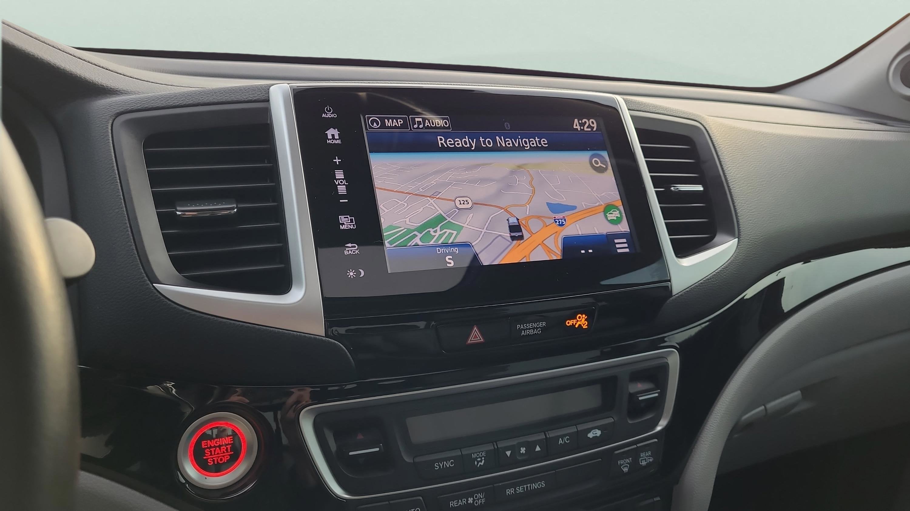 Includes Honda Satellite-Linked Navigation System, power moonroof, HomeLink garage door transmitter, wireless Apple CarPlay/Android Auto, Bluetooth® hands-free link, and AM/FM/MP3 audio with truck-bed speakers. Steering wheel-mounted audio controls, a memory driver’s seat, and a heated steering wheel add everyday comfort.
