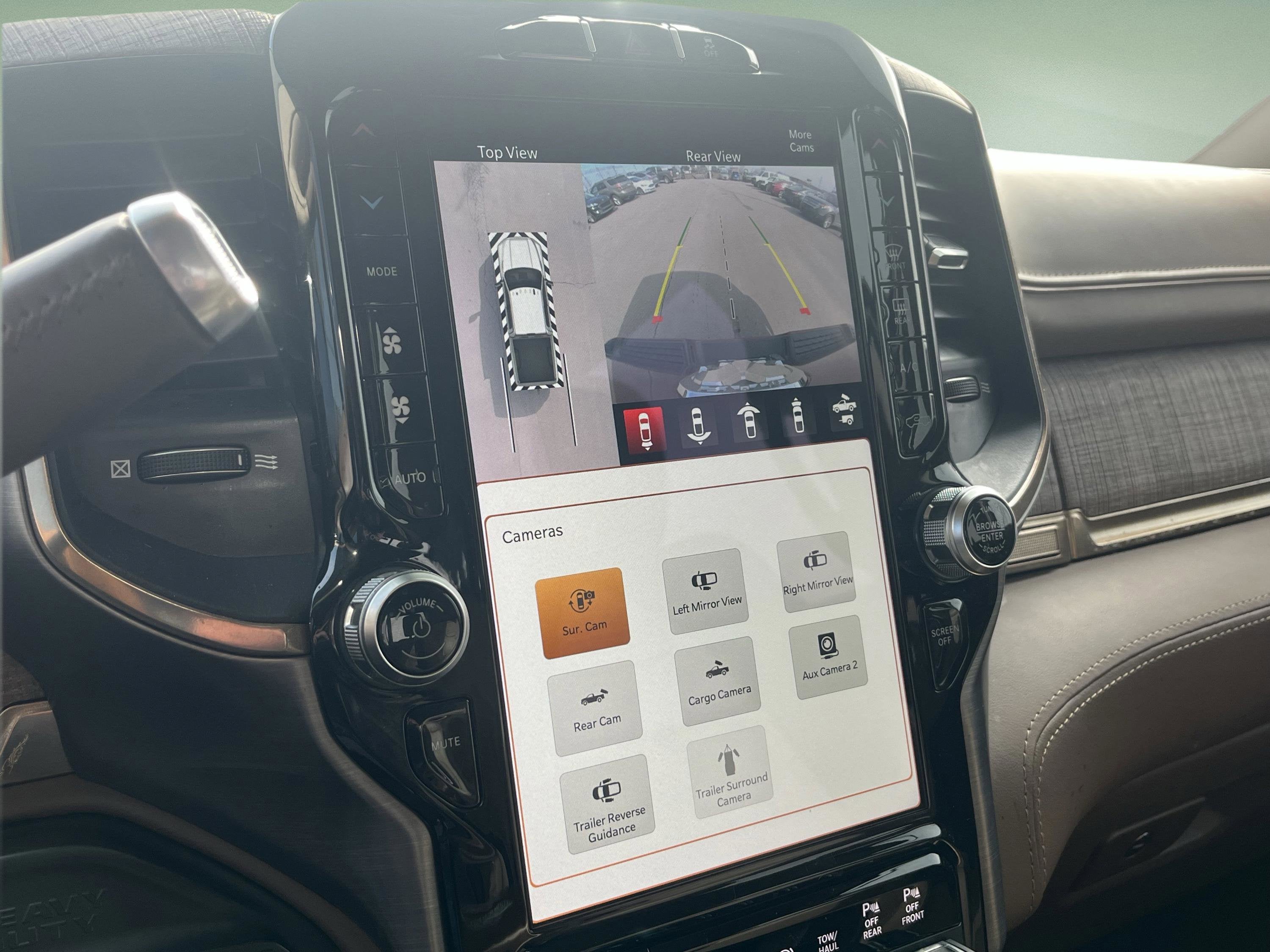 Technology is front and center with the massive 12 inch Uconnect touchscreen, integrated navigation, Apple CarPlay, Android Auto, Alexa built in, and a premium 17 speaker harman kardon audio system that delivers outstanding sound quality. Additional features like the digital rearview mirror, surround view camera system, blind spot and cross path detection, wireless charging pad, and 4G LTE Wi Fi hotspot ensure this Ram is as smart as it is capable.