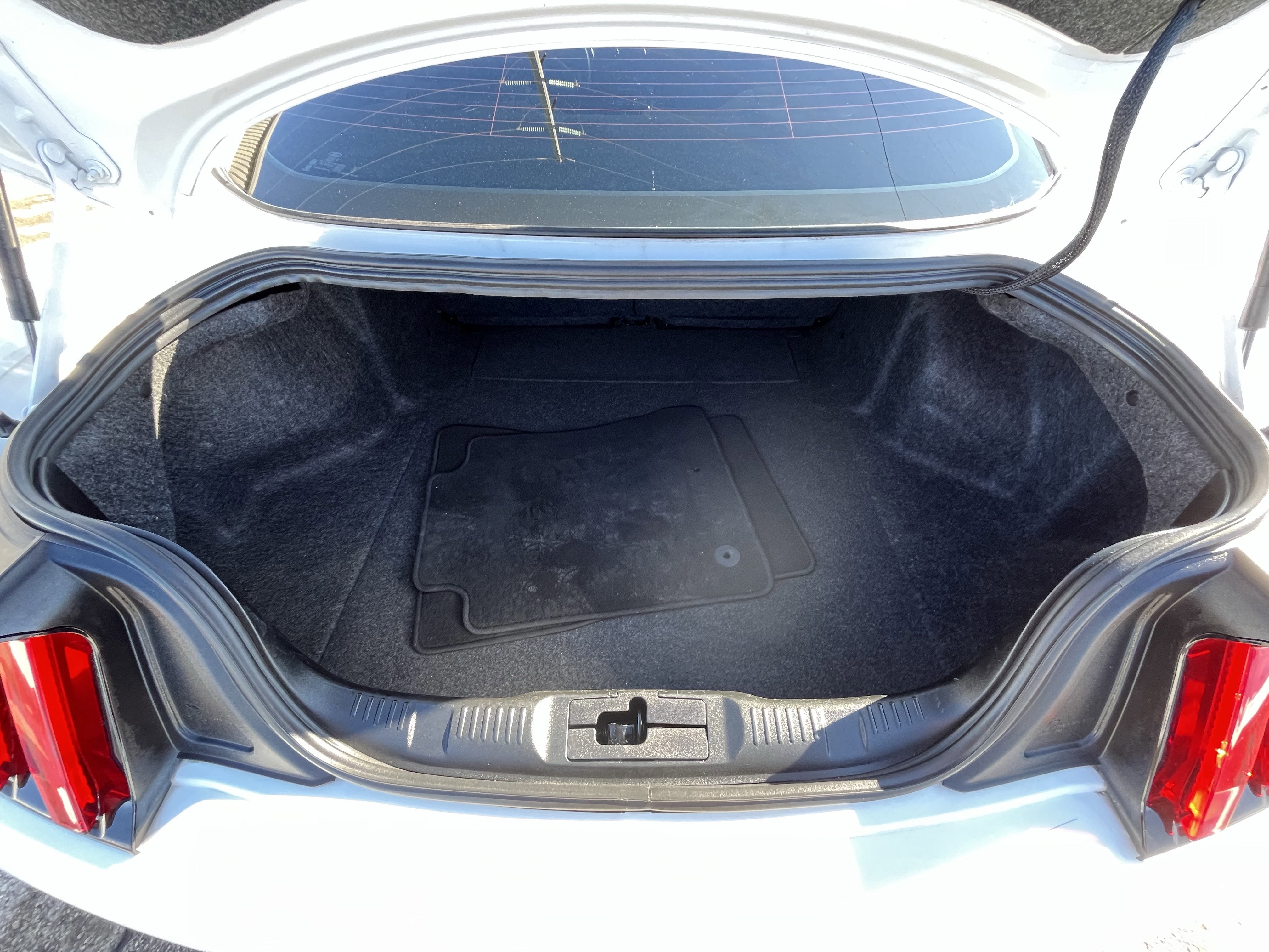 The Mustang Nite Pony Package gives this coupe a bold, aggressive look with blacked out exterior accents including the black grille, black front and rear pony badges, black mirror caps, painted black roof, black blade decklid spoiler, and striking 19 inch ebony black painted aluminum wheels. The result is a sleek, street ready appearance that stands out wherever you go.